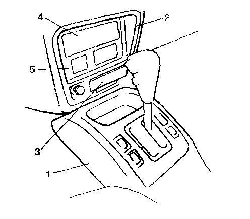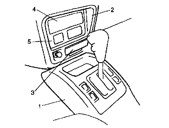 5. Remove ashtray (3) and tuner assembly, clock assembly (5), tuner pocket, radio hole cover (4), etc.