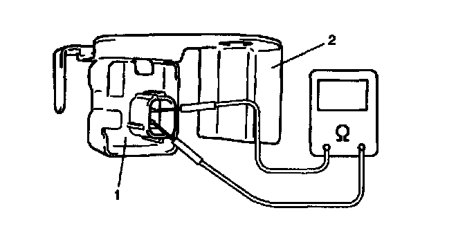- Check sensor (1) and its bracket (2) for dents, cracks, deformation or rust.