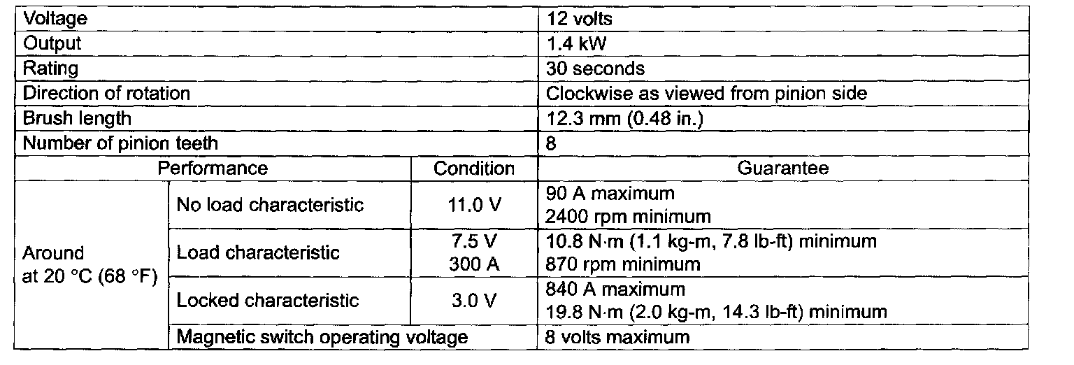 Starter Motor Specification (1.4 kW Type):