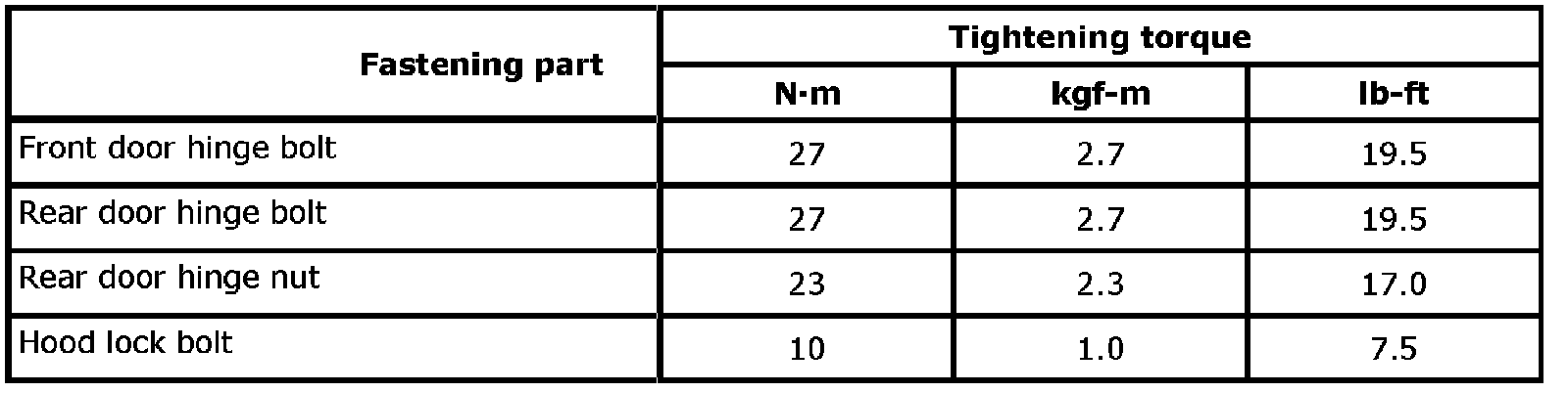 Tightening Torque Specifications: