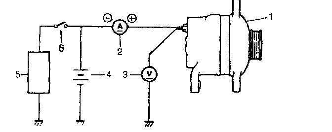 5. Connect switch (6), load (5), battery (4), voltmeter (3) and ammeter (2) to generator (1) as shown in figure.