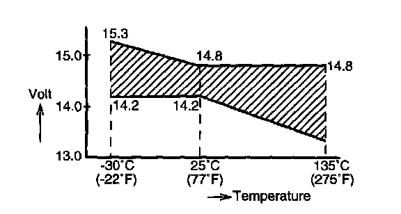 2. If obvious overcharge condition exists as evidenced by excessive spewing of electrolyte, measure generator "B" terminal voltage at engine 2000 rpm.
