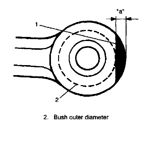 3. Cut flange part (1) of control arm bush (rubber and steel) with using care not to damage control arm end surface.