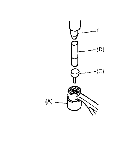 5. Remove front bushing by using hydraulic press (1) and special tools, pull out bushing.