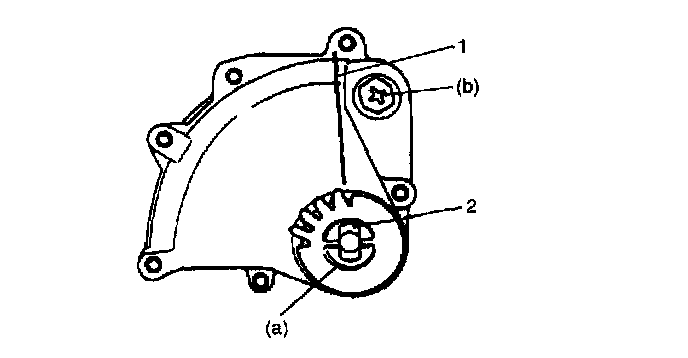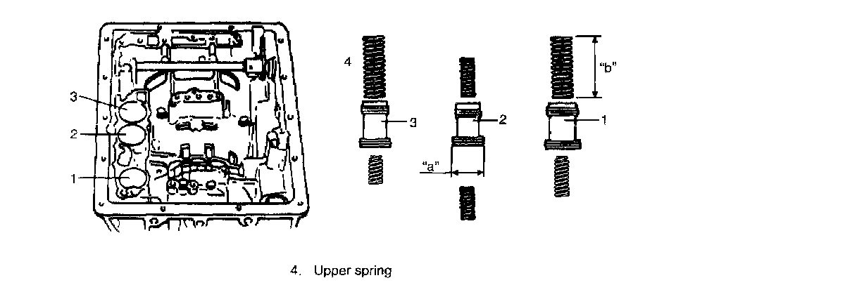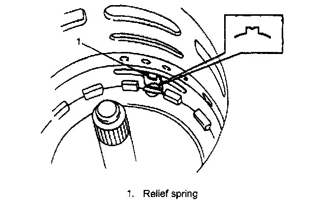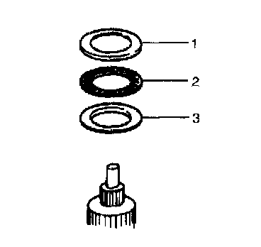 ^ Install so that opening in snap ring (1) will not align with any of 3 lugs of spring seat.