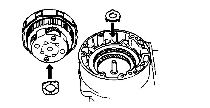 ^ Fit claws of thrust planetary rear washer and thrust planetary ring front race into holes securely.