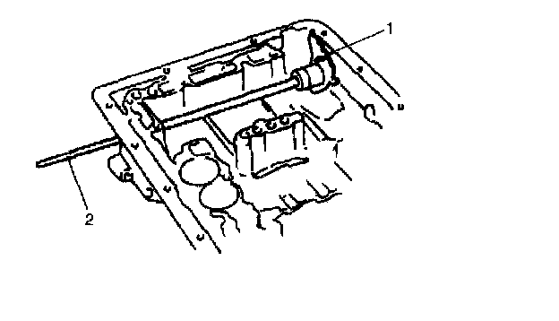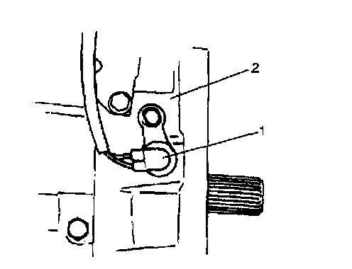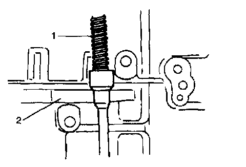 31. With parking lock rod (1) installed to manual shift lever, place parking lock rod (1) on parking lock pawl (2) as shown in the figure. Then install pawl bracket and tighten bracket screw to specified torque.