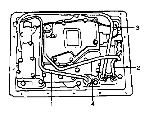 39. Using a plastic hammer, connect forward clutch applying tube (1), lube applying tube (2), reverse brake applying tube (3) and brake applying tube (4) in such order as shown in the figure.