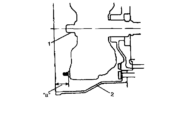 46. Confirm that torque converter is fully fitted in transmission. Confirmation can be done by measuring dimension between end surface of housing case (2) and drive plate installation seat.