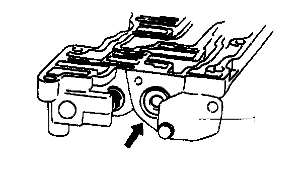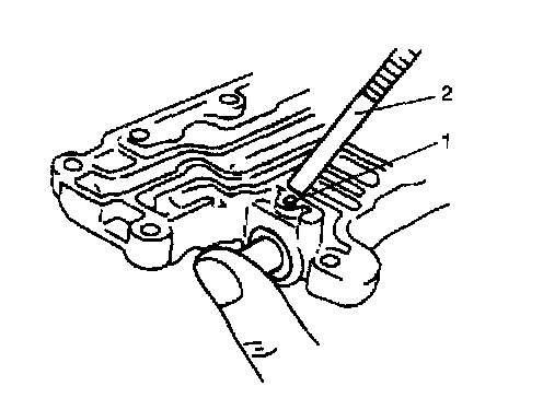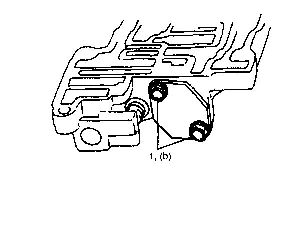 3. Remove one cover bolt on front valve end cover (1) and loosen the other to move cover as shown in figure. Remove secondary regulator valve sub assembly and secondary regulator valve spring. Then, remove remaining loose cover bolt to remove front valve end cover.