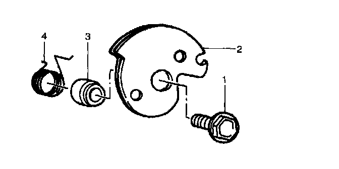 4. Remove throttle cam bolt (1) and then remove throttle valve cam (2), throttle cam return spring (4) and cam spacer (3)