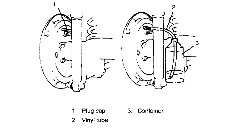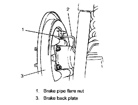 3. Disconnect brake pipe (2) from wheel cylinder. With right side wheel cylinder, disconnect 2 brake pipes.