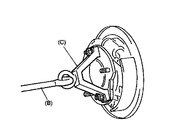 24. Upon completion of all jobs, depress brake pedal with about 30 kg (66 lbs) load three to ten times so as to obtain proper drum-to-shoe clearance. Adjust parking brake cable.