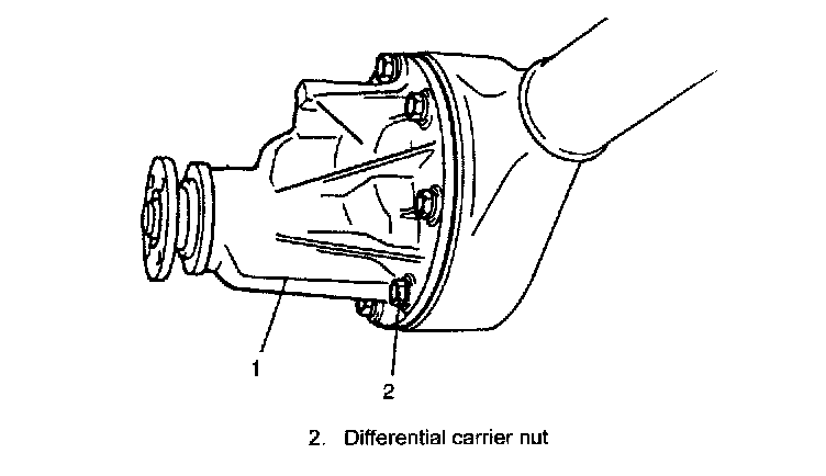 6. Install differential carrier assembly to axle housing and tighten carrier bolts (1) to specified torque.