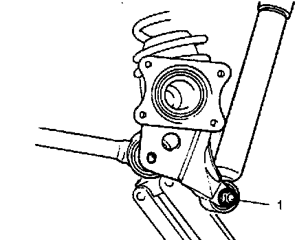 18. Remove shock absorber lower mount bolt (1).