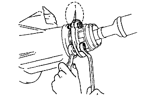 3. Before removing propeller shaft, give match marks (1) on joint flange and propeller shaft as shown.