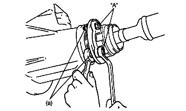 3. Install propeller shaft to joint flange aligning match marks and torque flange nuts to specification. Apply thread lock cement to thread part of bolt if reused.