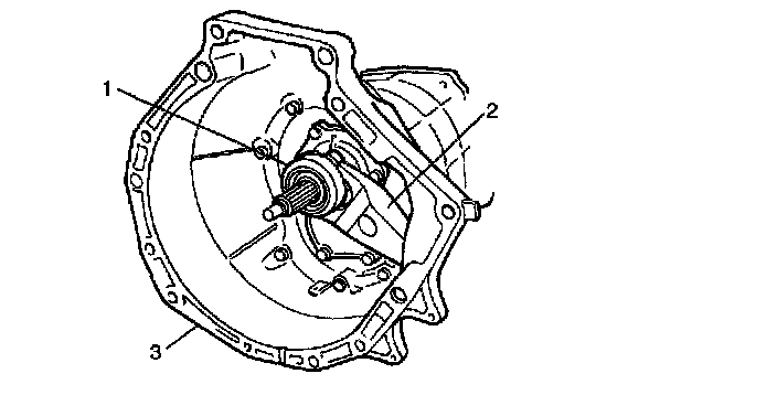 Disassembly1. Remove clutch release bearing (1), release fork (2) and clutch housing (3).
