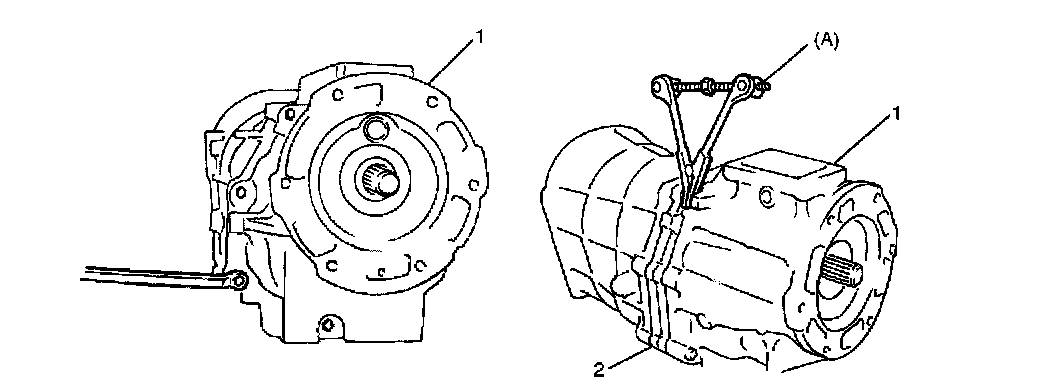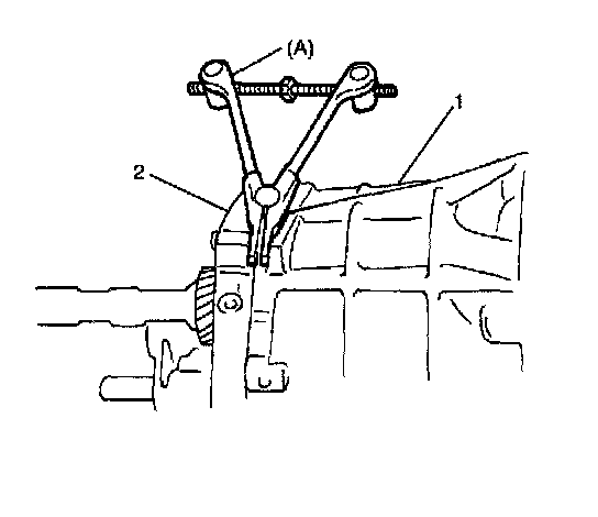 10. Using special tool (A), separate transmission front case (1) and transmission intermediate case (2).
