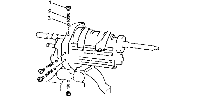 3. Remove locating screw (1), locating spring (2) and locating ball (3) as shown in the figure.