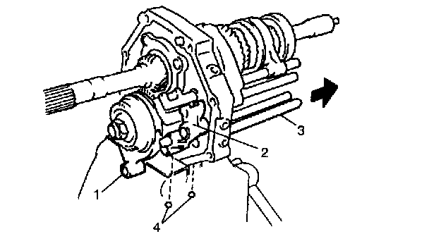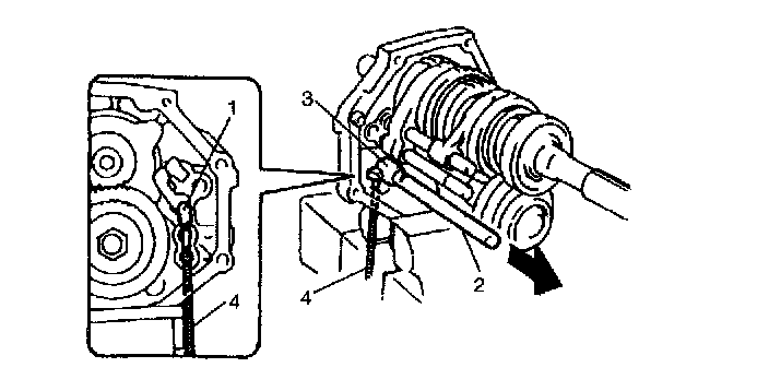 NOTE: When pulling gear shaft, hold locating roller No. 1 (1) with magnet (4) to prevent it from falling.
