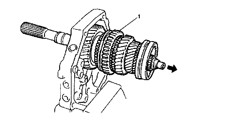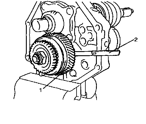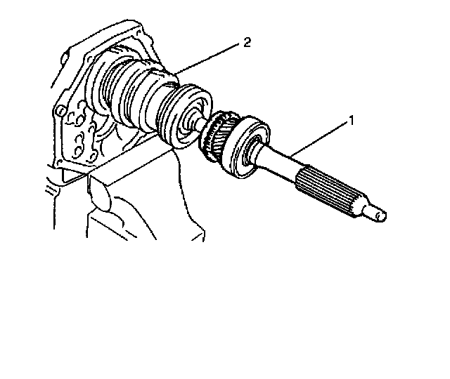 38. Remove input shaft assembly (1) with synchronizer ring from main shaft assembly (2).