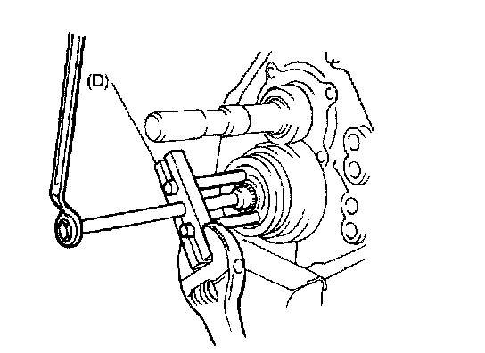 NOTE: If intermediate case is engaged with bearing firmly, tap front face of intermediate case with plastic hammer lightly as it will cause main shaft assembly to come off forward.