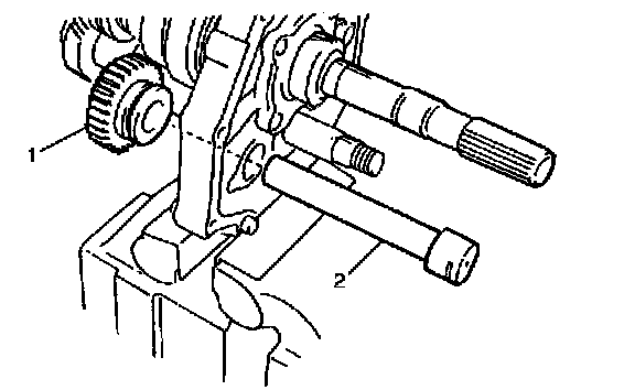 35. Remove reverse idle gear (1) and shaft (2).