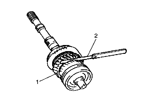 4. Pull out low speed sleeve/hub assembly (1), needle bearing and 2nd gear (2) from main shaft.