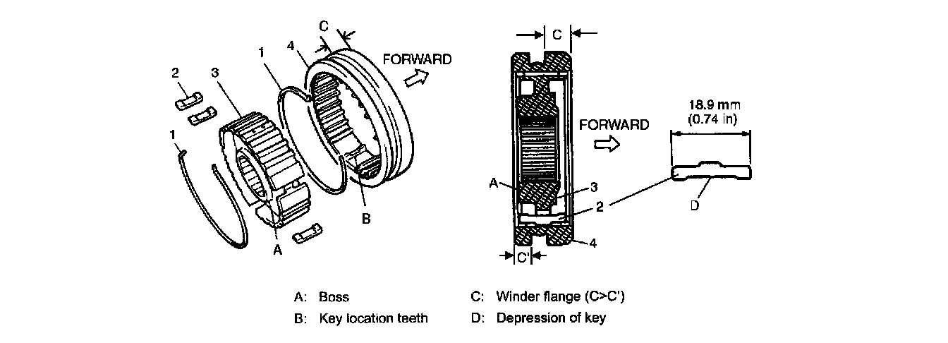 ^ Check each synchronizer key and synchronizer spring and replace as necessary.