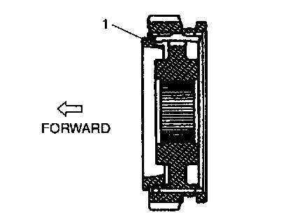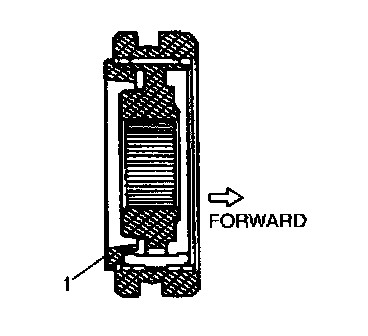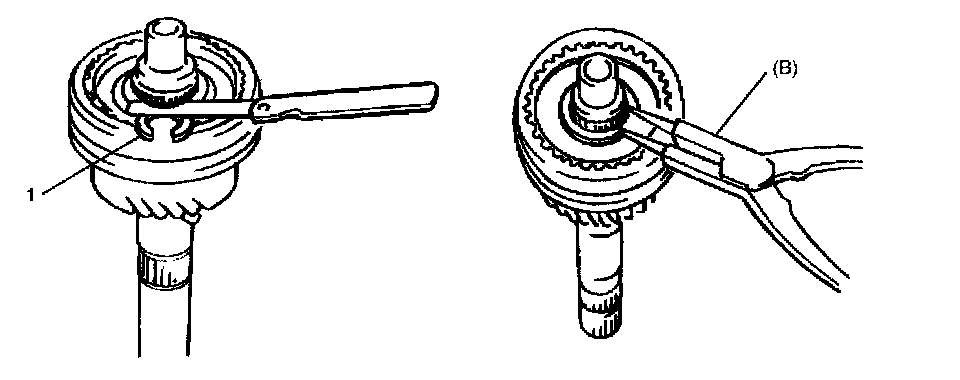 4. Select Circlip (1) that will make thrust clearance of clutch hub 0.1 mm (0.0039 inch) or less and install it.