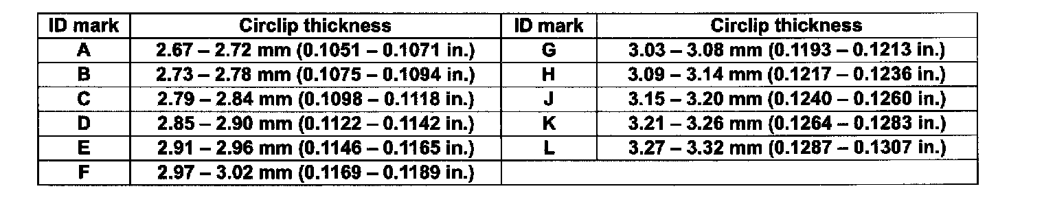 9. Select circlip (1) that will make its thrust clearance 0.1 mm (0.0039 inch) or less and install it.