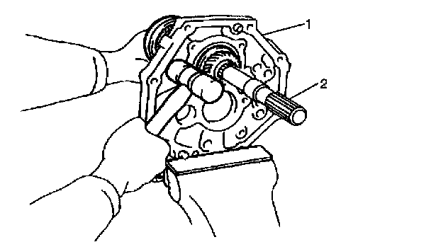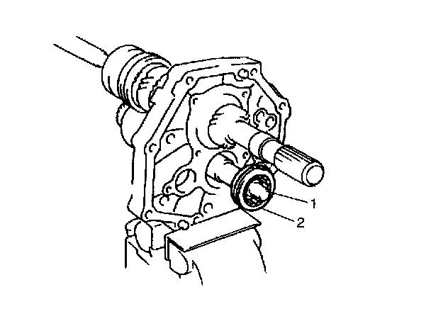 5. Install counter shaft (1) and rear bearing (2) to intermediate case.