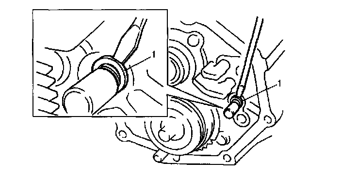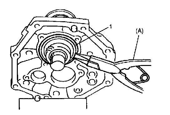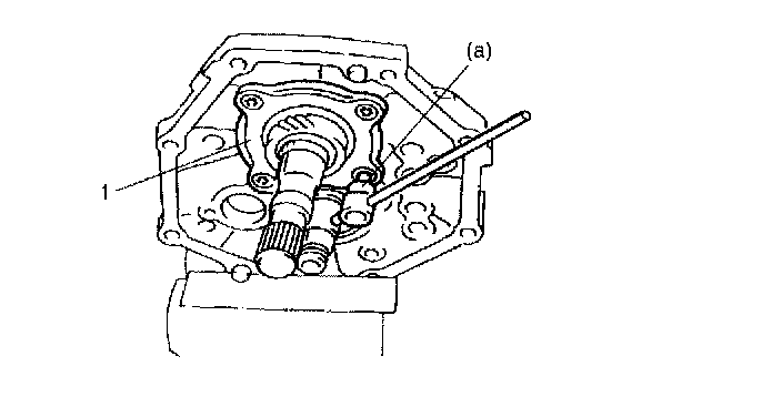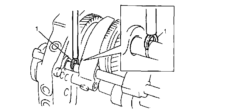 18. Fix new circlip (1) to high gear shift shaft by using lever or the like and hammer.