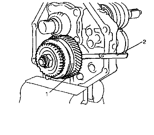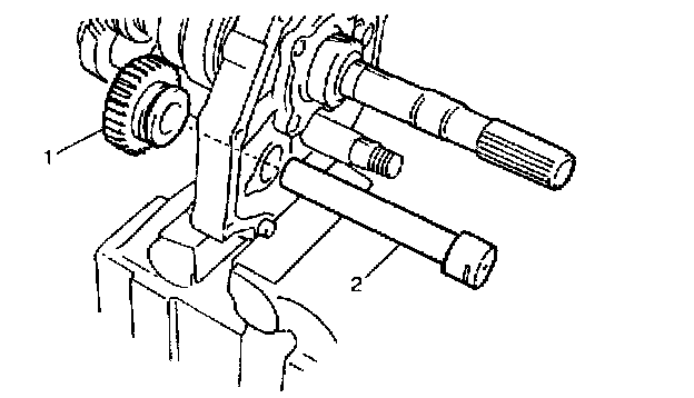 7. Install reverse idle gear (1) and shaft (2).