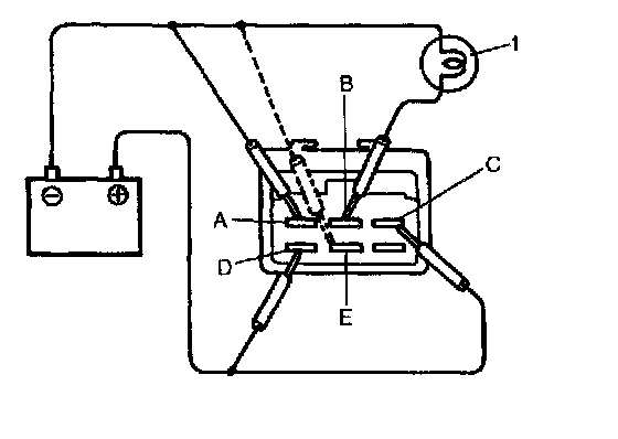 3. Connect (-) wire of 12 V battery to terminal "E" and check if test light (1) come on.