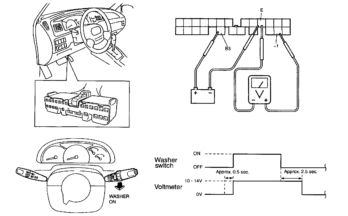 5. Connect voltmeter positive lead to terminal "+1" and negative lead to terminal "E".