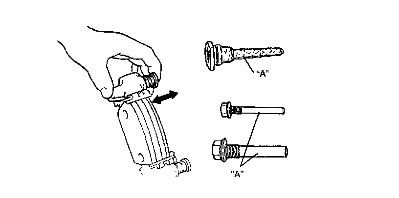 Check slide pin (bolt) for smooth movement as shown in the figure.