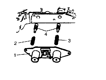 6. After removing shift solenoid valve (A and B) (1), remove solenoid valve gasket, low coast modulator valve spring (2), inter coast modulator valve spring (3) and 2 intermediate coast modulator valves (4).