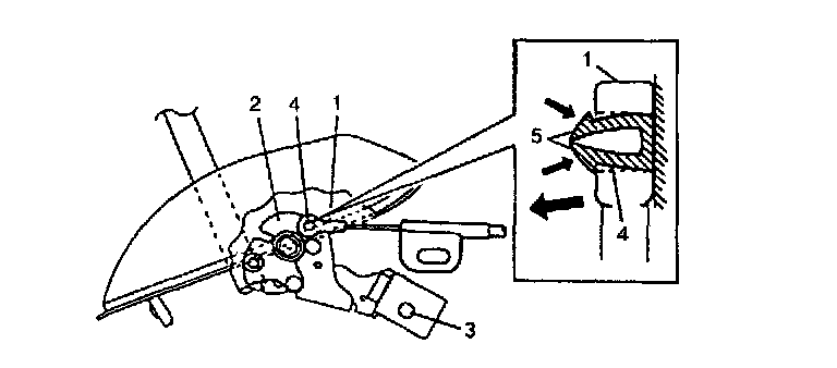b. Move key release cam (1) so that it is set at such angle as shown in figure and with special tool inserted in hole A, fix key release cam (1).