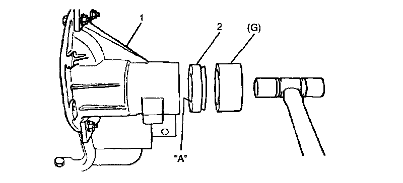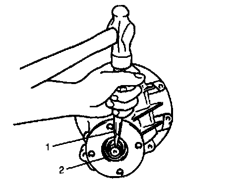 7. Using special tool and plastic hammer drive oil seal (2) into differential carrier (1) till it becomes flush with carrier end. Then apply grease to oil seal lip.