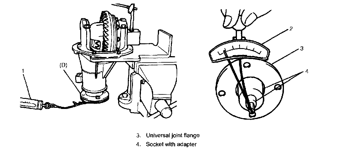 When preload of bevel pinion is 2.6 kgf/5.73 lbs., acceptable composite preload of both pinion bearings and side bearings should be between 2.8 and 3.2 kgf/6.17 and 7.05 lbs.