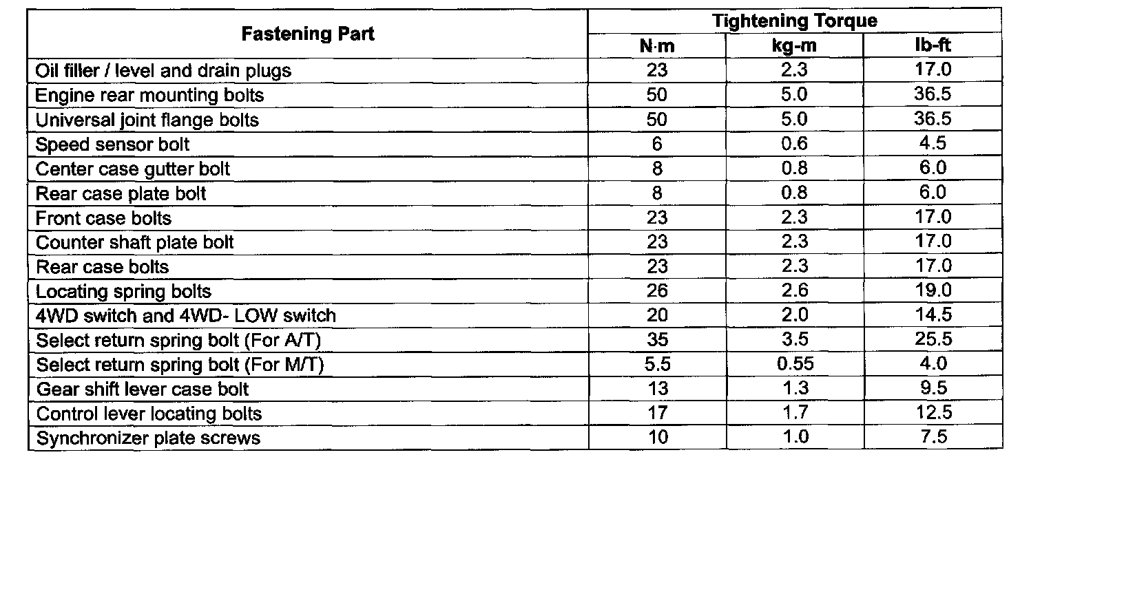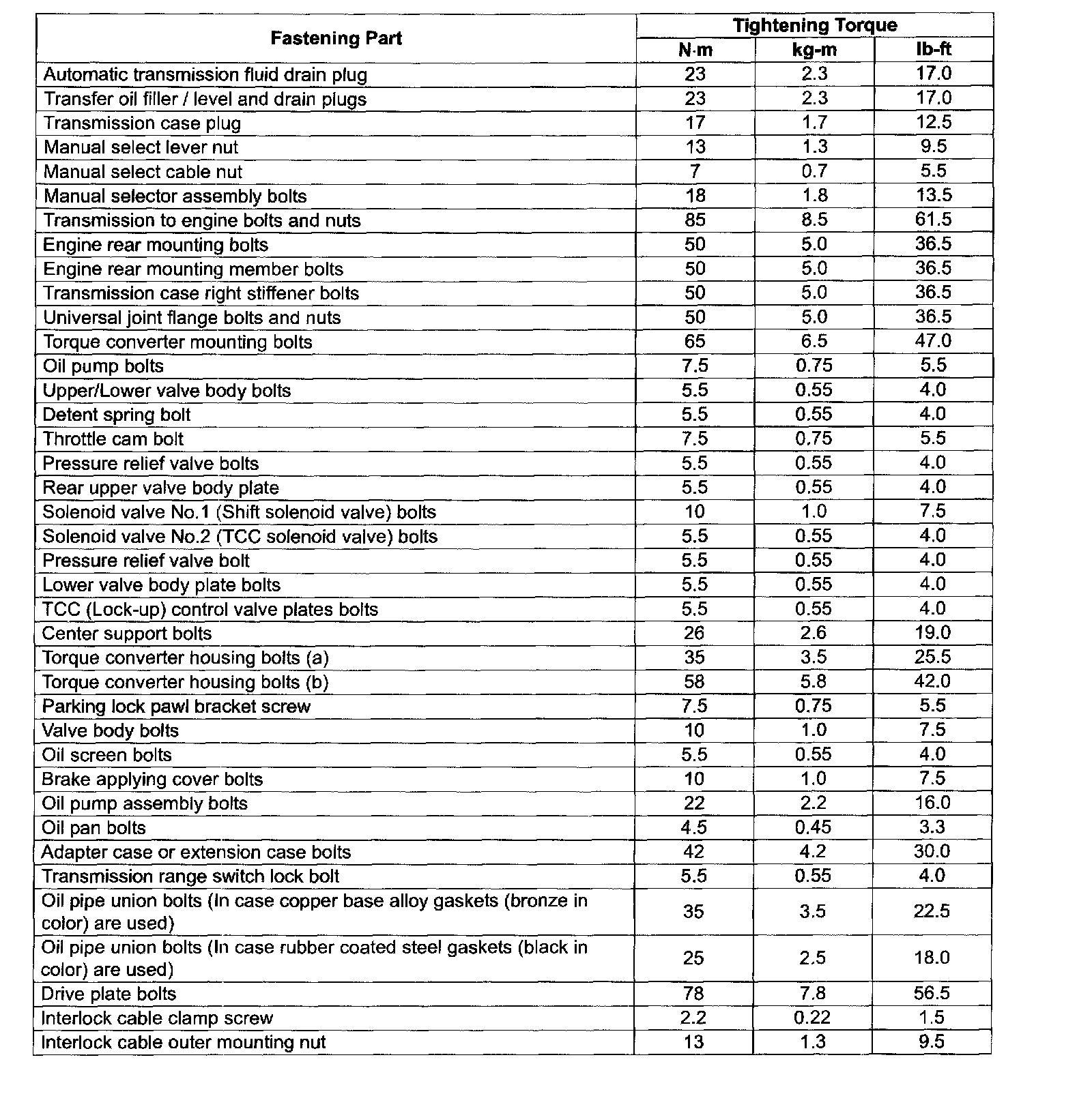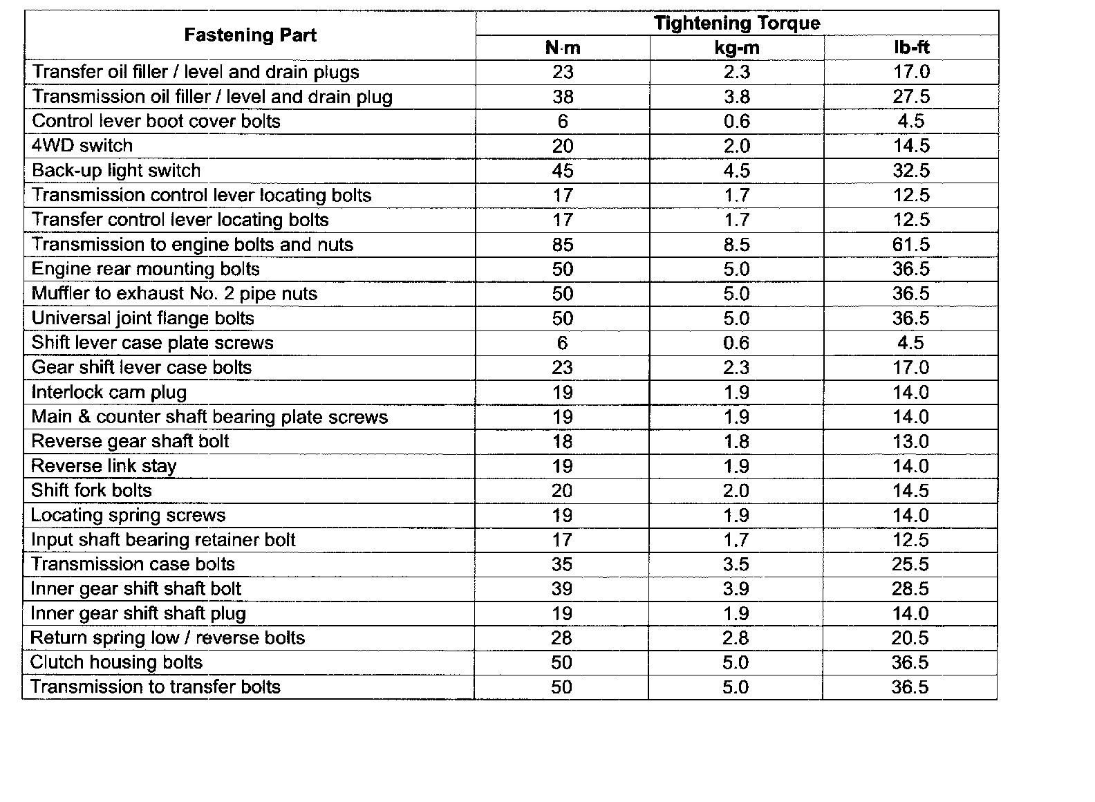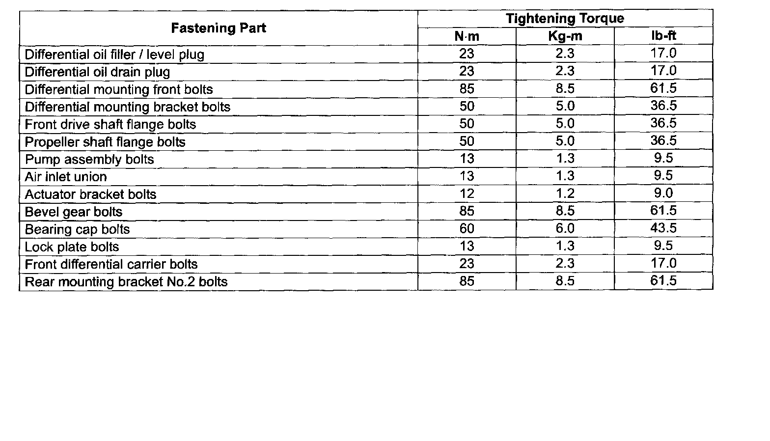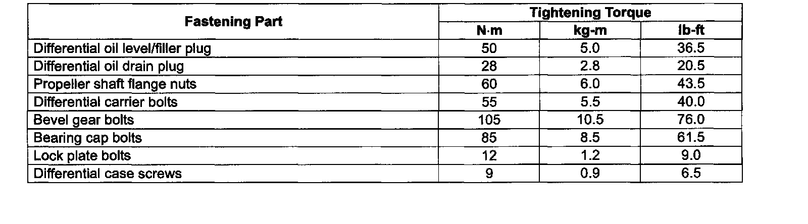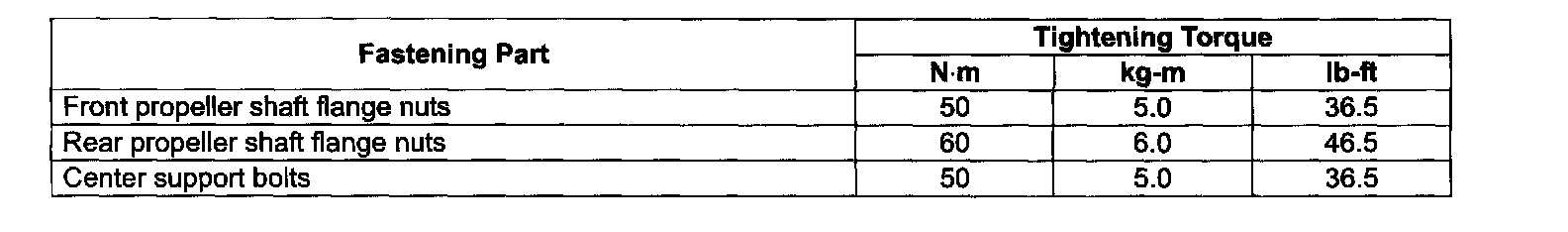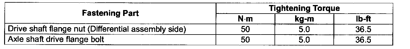 DRIVE SHAFTTIGHTENING TORQUE SPECIFICATIONS
