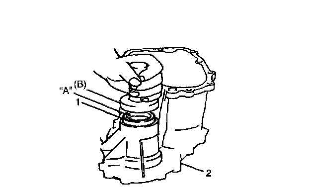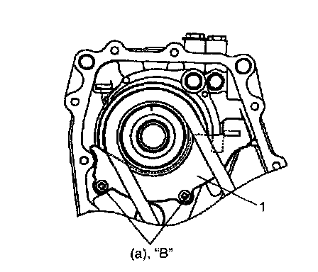 3. Install oil gutter to center case (2) and tighten bolt (1) applying thread lock cement "B".