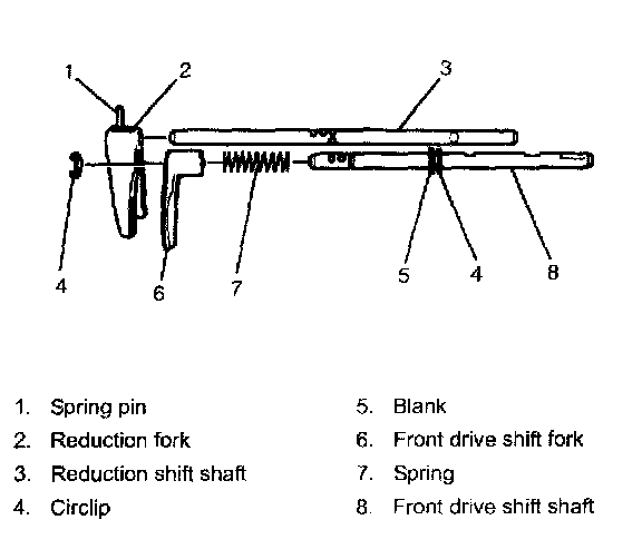 NOTE: When installing reduction shift shaft, front drive shift shaft must be placed at 4WD position.