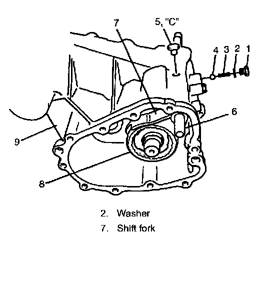 NOTE: Make sure that bent end of synchronizer spring is inserted into hole (if equipped).