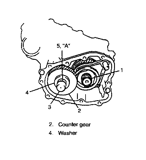 26. Install counter shaft assembly into case. If O-ring (5) has been removed, install new O-ring onto shaft (3) and apply grease "A". Also, install low gear needle bearing (1).