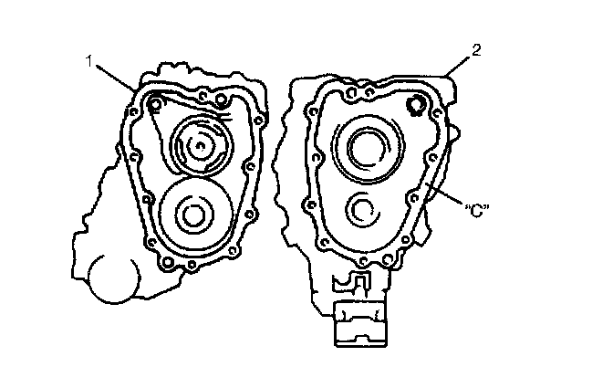 33. Apply sealant "C" to mating surface of front case (2) evenly and put cases together