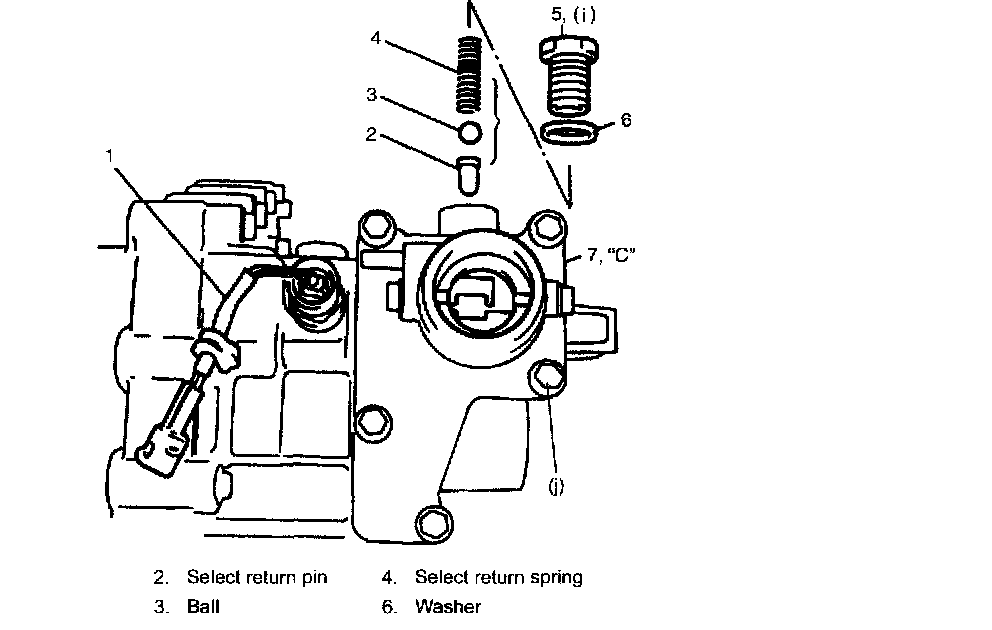 Select return spring bolt (for A/T) (i): 35 Nm (3.5 kgf-m, 25.5 ft. lbs.)