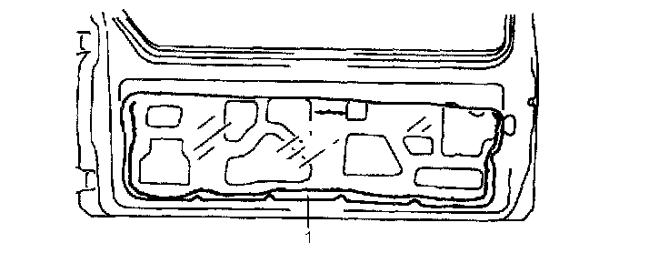 - Apply sealing compound to peripheral of door hem area and reinstall door sealing cover (1).